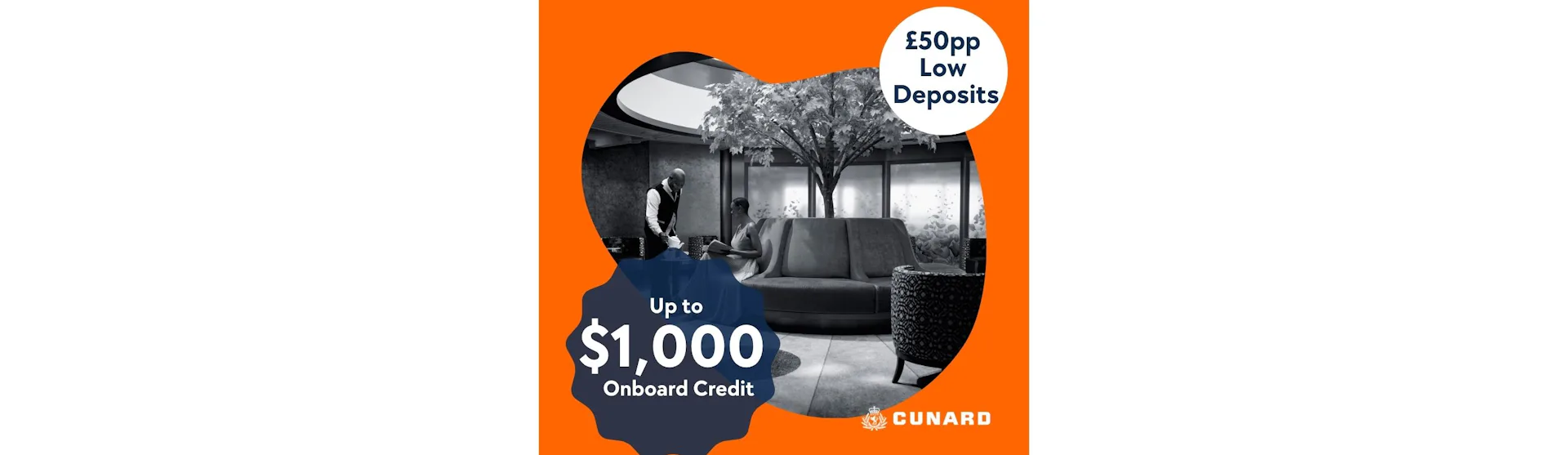 Cunard Cruises with up to $1,000 Onboard Credit & £50pp Deposit