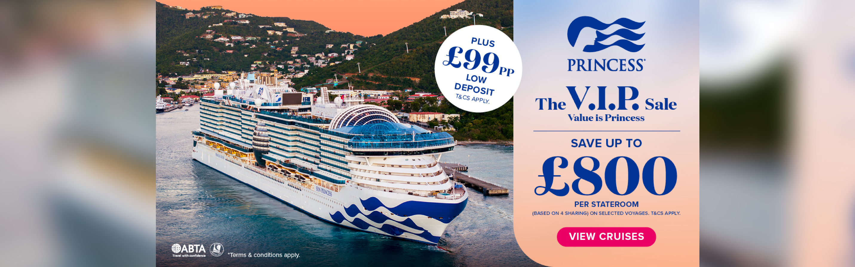 The Princess Cruise VIP Sale is your chance to unlock exceptional value on some of the world’s most loved cruise itineraries. With savings of up to £800 per stateroom and low £99pp deposits on selected voyages, this limited-time offer makes luxury cruising more accessible than ever.