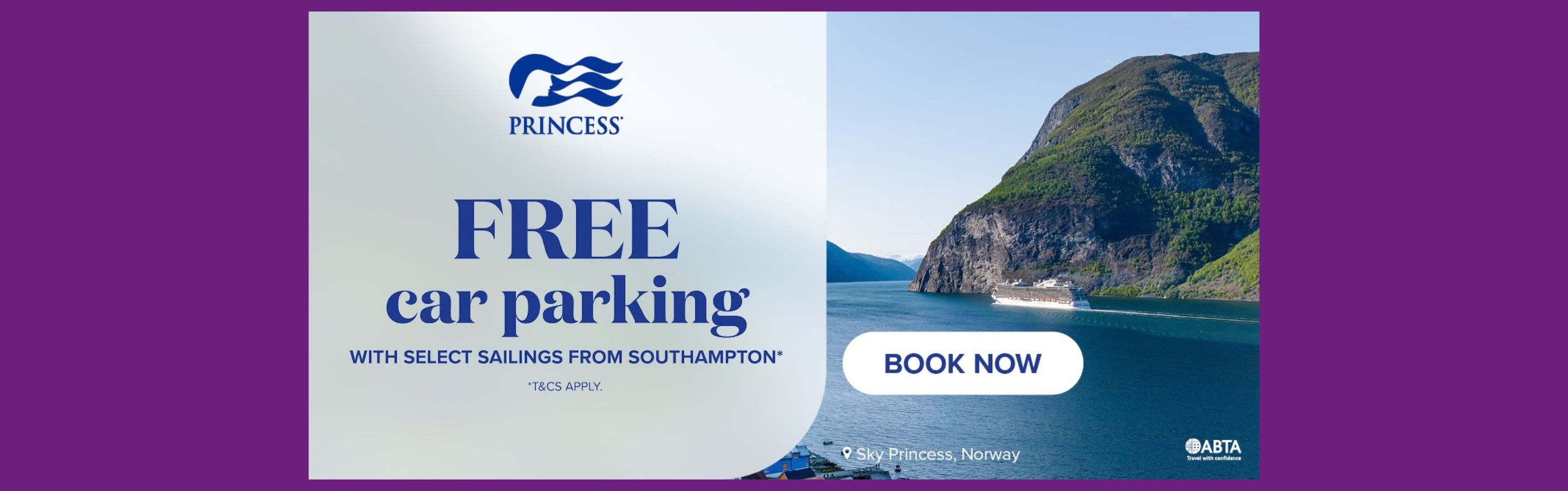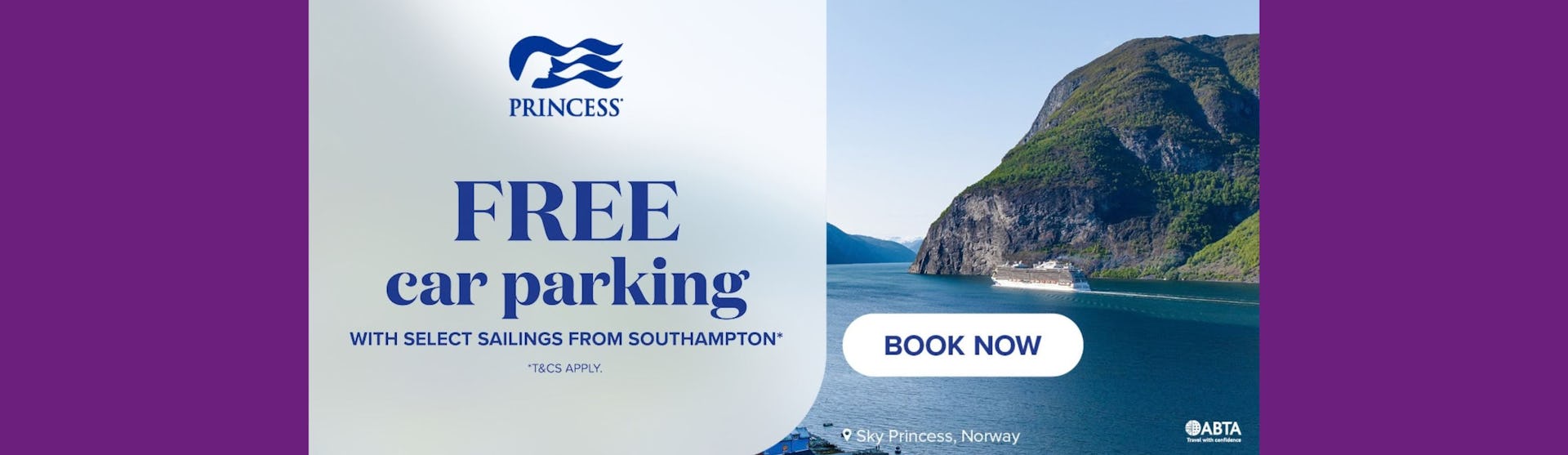 Enjoy effortless cruises from Southampton with Princess Cruises on board Regal Princess, Majestic Princess or Sky Princess. Book by 30 April to enjoy free parking at the port and save up to £243 on selected 2026–2027 sailings.